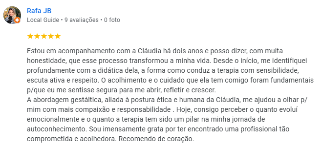 A duração do acompanhamento terapêutico varia de acordo com as suas necessidades e objetivos pessoais. Não existe um prazo fixo, pois cada indivíduo traz suas próprias demandas e questões a serem trabalhadas. Meu compromisso é estar ao seu lado, respeitando o seu tempo e processo, para que possamos juntos alcançar as transformações que você busca.